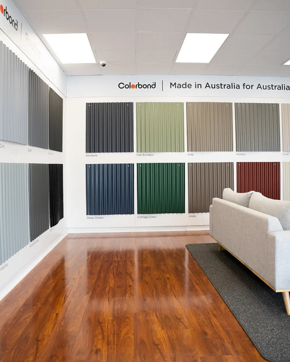 In our showroom you can see on display the entire COLORBOND® steel range where you can mix and match roof sheets with, gutters and fascia’s to help personalise the look of your home.