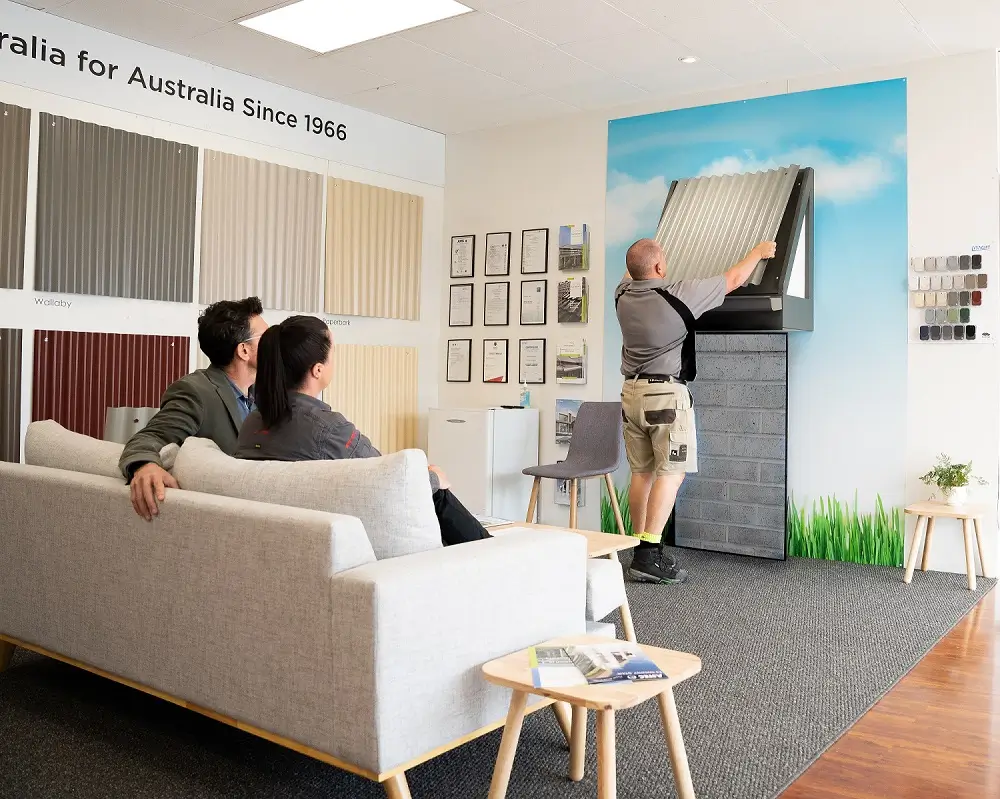Take a photo of your exterior wall to mix and match with all the COLORBOND® steel colours in our showroom. Choosing the right colours for your new roof has never been easier!